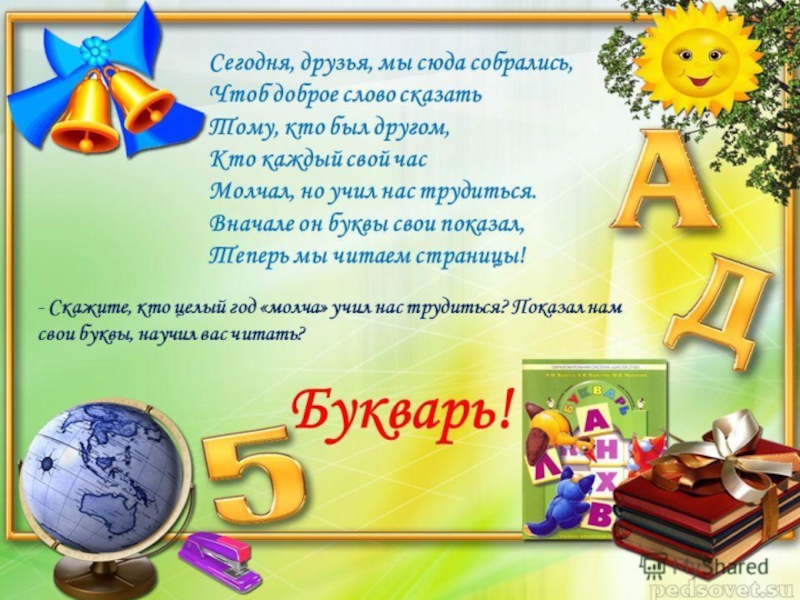 Презентация, доклад по внеклассному мероприятию Прощание с букварем
