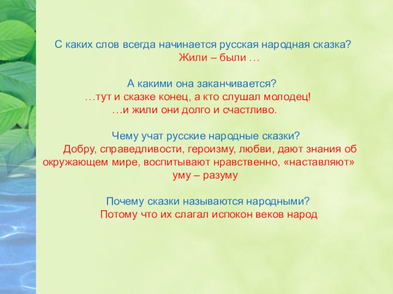 Слайд 6 С каких слов всегда начинается русская народная сказка?