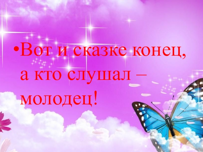 Слайд 26Вот и сказке конец, а кто слушал – молодец!