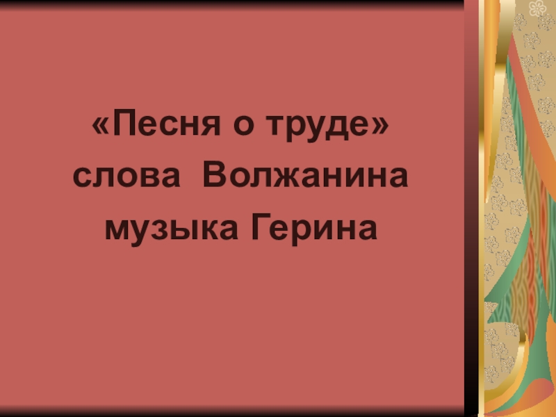 «Песня о труде» слова Волжанинамузыка Герина