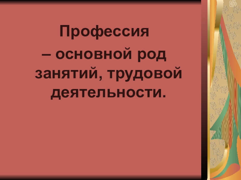 Профессия – основной род занятий, трудовой деятельности.