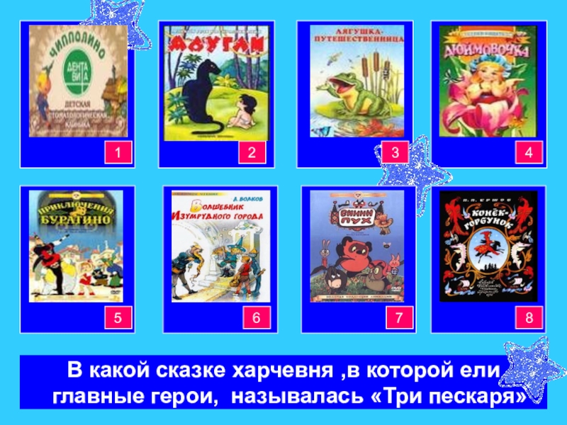 Кот в сапогахРусалочкаКрасная шапочкаЗолушка34444421Красная шапочкаКрасная шапочкаКрасная шапочкаКрасная шапочка8765В какой сказке харчевня ,в которой ели главные герои, называлась