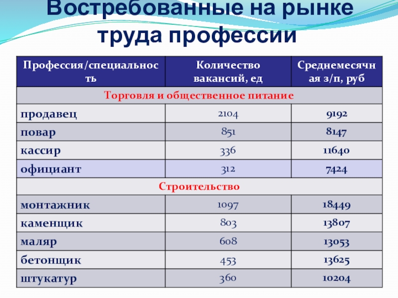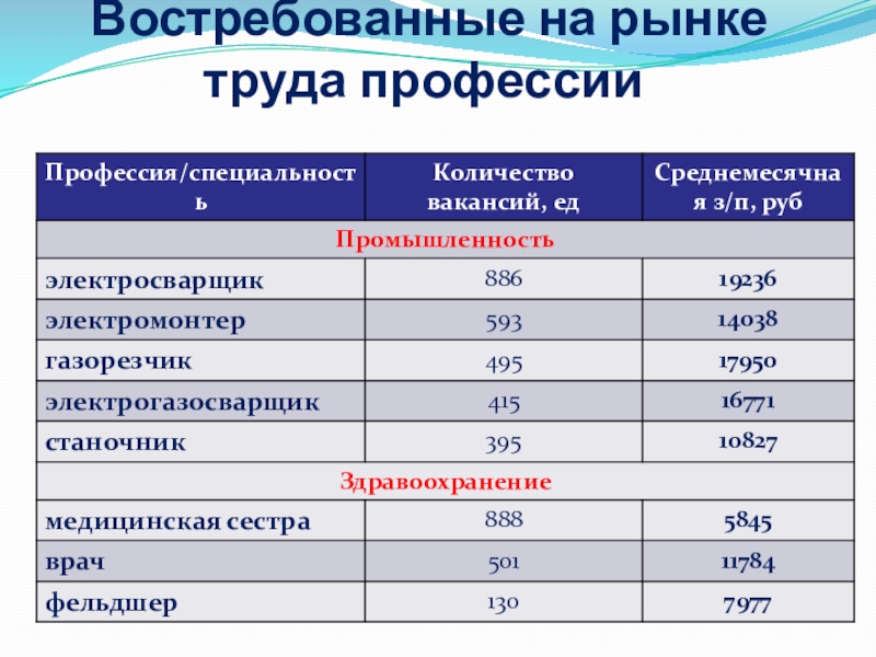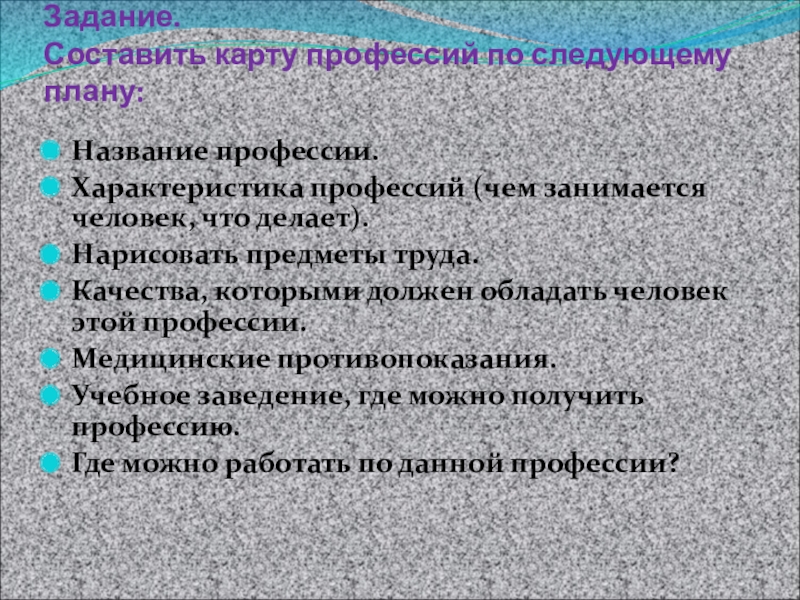 Составить карту профессий по следующему плану: