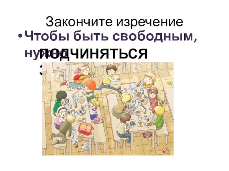 Закончите изречениеЧтобы быть свободным, нужноПОДЧИНЯТЬСЯ ЗАКОНАМ.