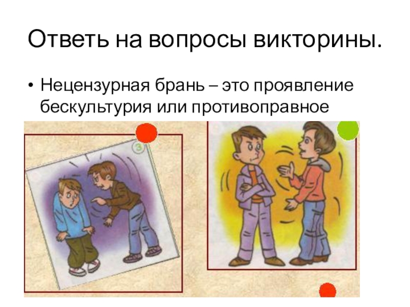 Ответь на вопросы викторины.Нецензурная брань – это проявление бескультурия или противоправное деяние?