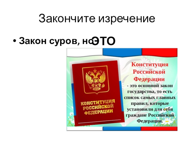 Закончите изречениеЗакон суров, ноЭТО ЗАКОН