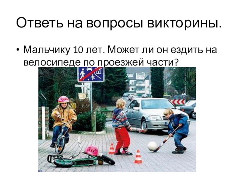 Ответь на вопросы викторины.Мальчику 10 лет. Может ли он ездить на велосипеде по проезжей части?