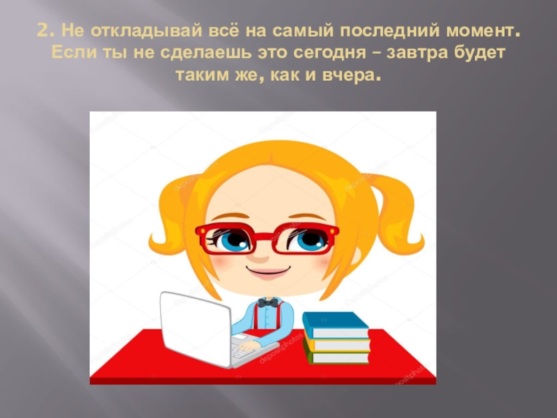 2. Не откладывай всё на самый последний момент. Если ты не сделаешь это сегодня – завтра будет