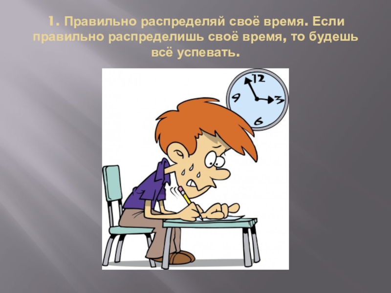 Слайд 21. Правильно распределяй своё время. Если правильно распределишь своё время, то