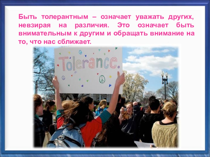 Толерантность – это уважение, принятие и понимание многообразия мира.