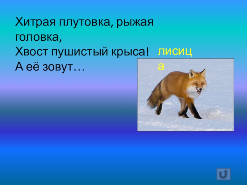 Хитрая плутовка, рыжая головка,Хвост пушистый крыса!А её зовут…