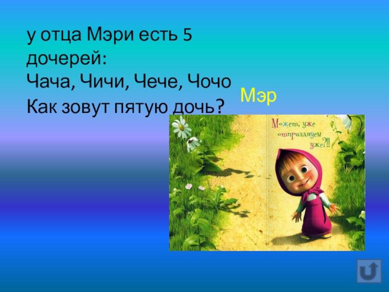 у отца Мэри есть 5 дочерей:Чача, Чичи, Чече, ЧочоКак зовут пятую дочь?