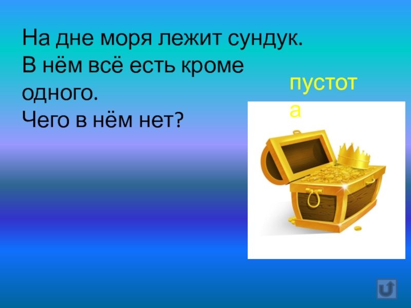 На дне моря лежит сундук.В нём всё есть кроме одного.Чего в нём нет?