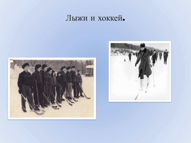 Слайд 4Лыжи и хоккей.