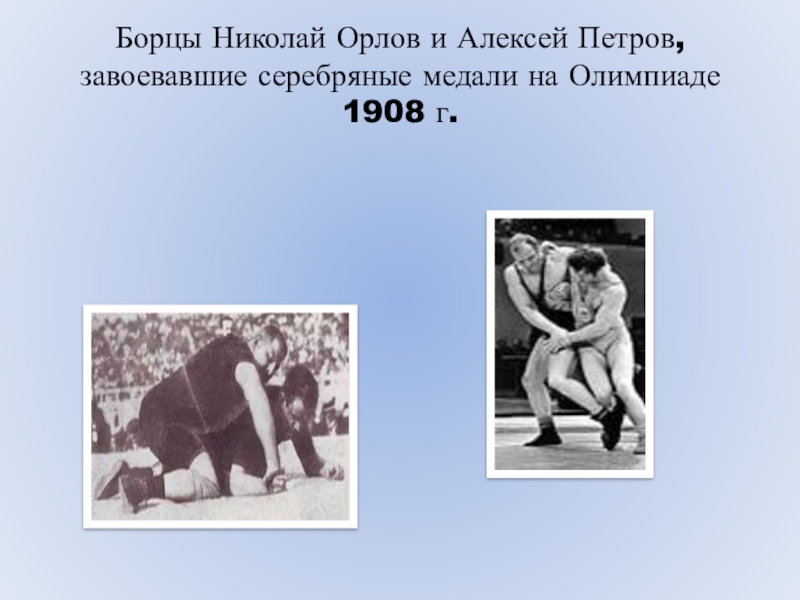 Слайд 10Борцы Николай Орлов и Алексей Петров, завоевавшие серебряные медали на Олимпиаде