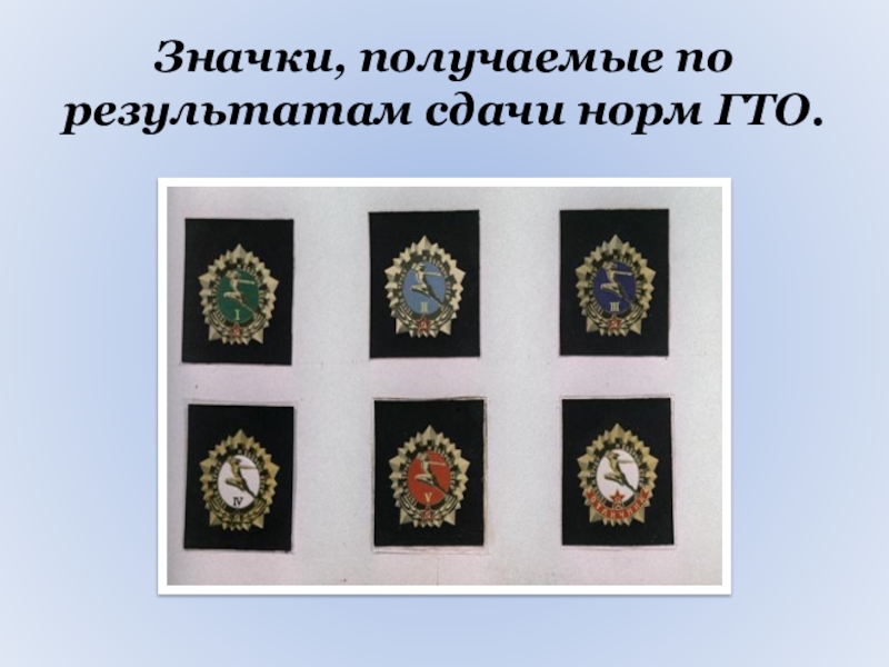 Слайд 24Значки, получаемые по результатам сдачи норм ГТО.