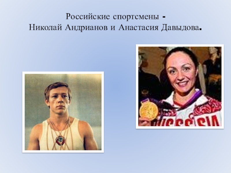 Слайд 15Российские спортсмены - Николай Андрианов и Анастасия Давыдова.