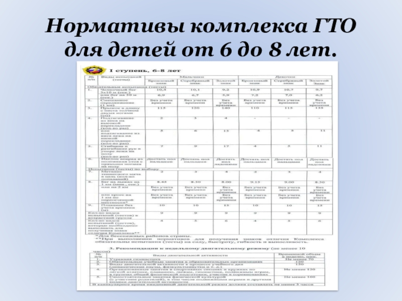 Слайд 21Нормативы комплекса ГТО для детей от 6 до 8 лет.