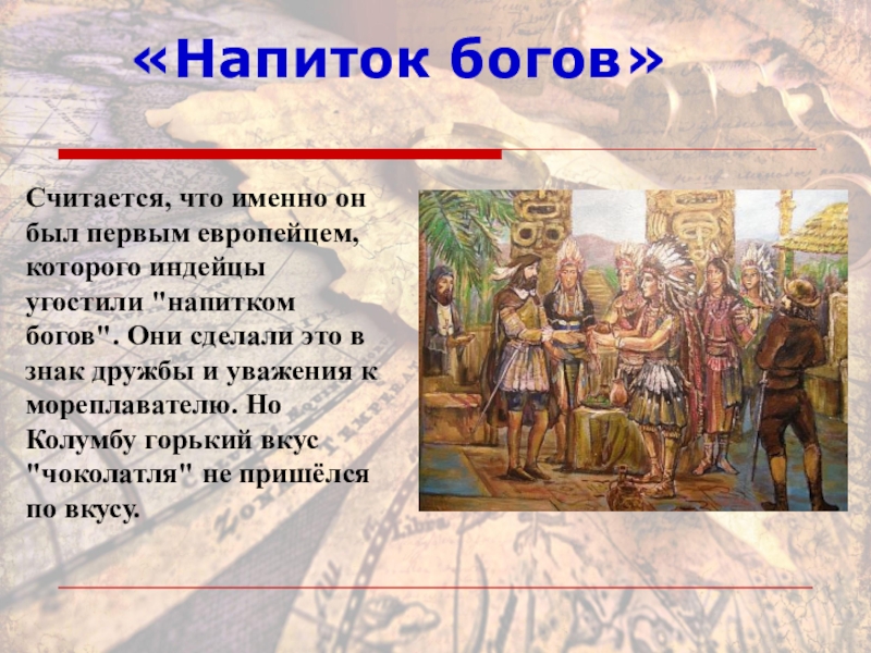 «Напиток богов»Считается, что именно он был первым европейцем, которого индейцы угостили