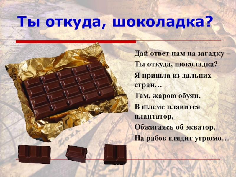Презентация, доклад по внеклассной работе Ты откуда, шоколадка?