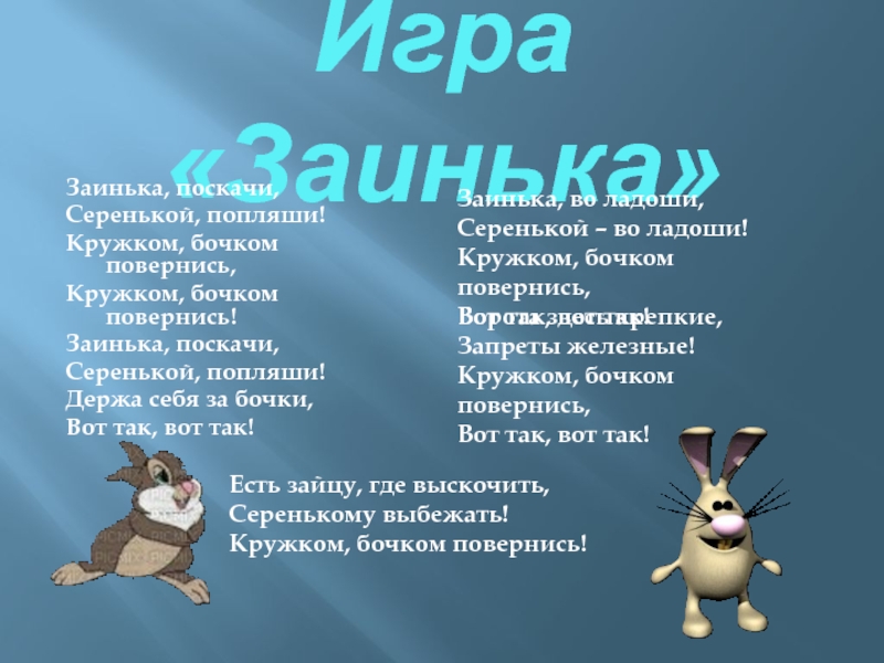 Заинька, во ладоши,