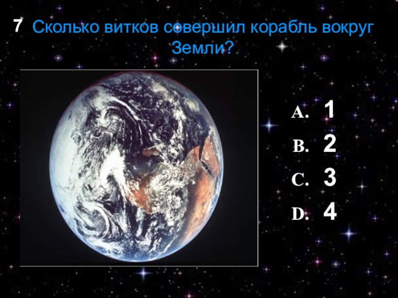 Слайд 27Сколько витков совершил корабль вокруг Земли?