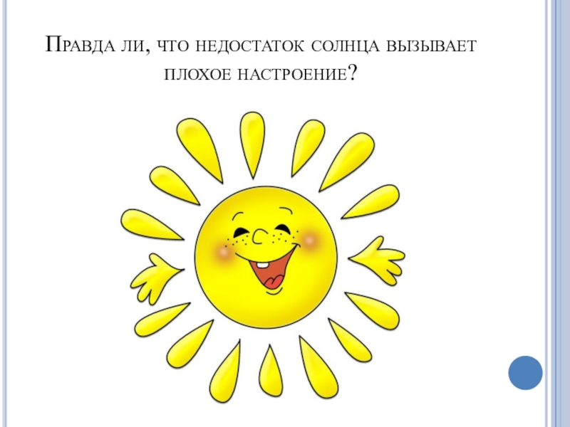 Слайд 12Правда ли, что недостаток солнца вызывает плохое настроение?