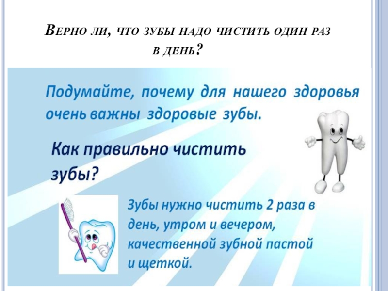 Слайд 10 Верно ли, что зубы надо чистить один раз в день?