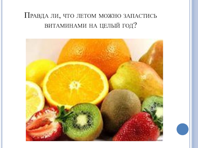 Слайд 13Правда ли, что летом можно запастись витаминами на целый год?