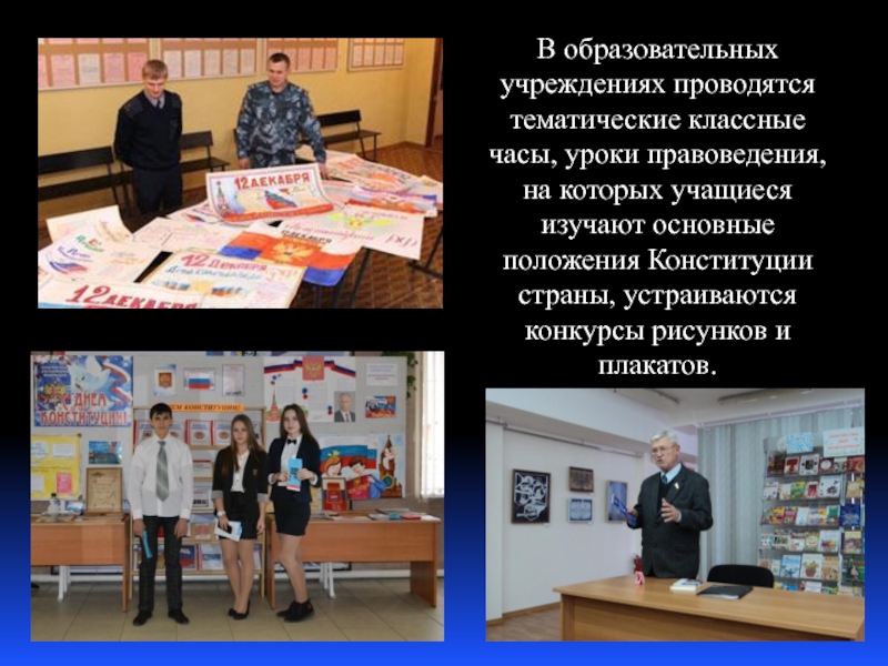 учащиеся изучают основные положения Конституции страны, устраиваются конкурсы рисунков и плакатов.