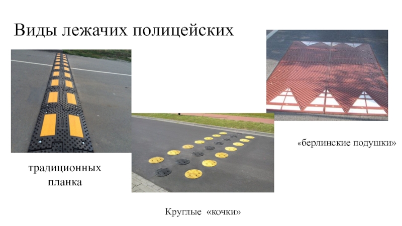 Виды лежачих полицейских традиционных планка «берлинские подушки» Круглые «кочки»