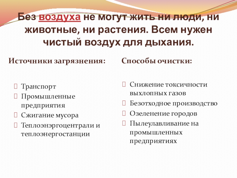Источники загрязнения: