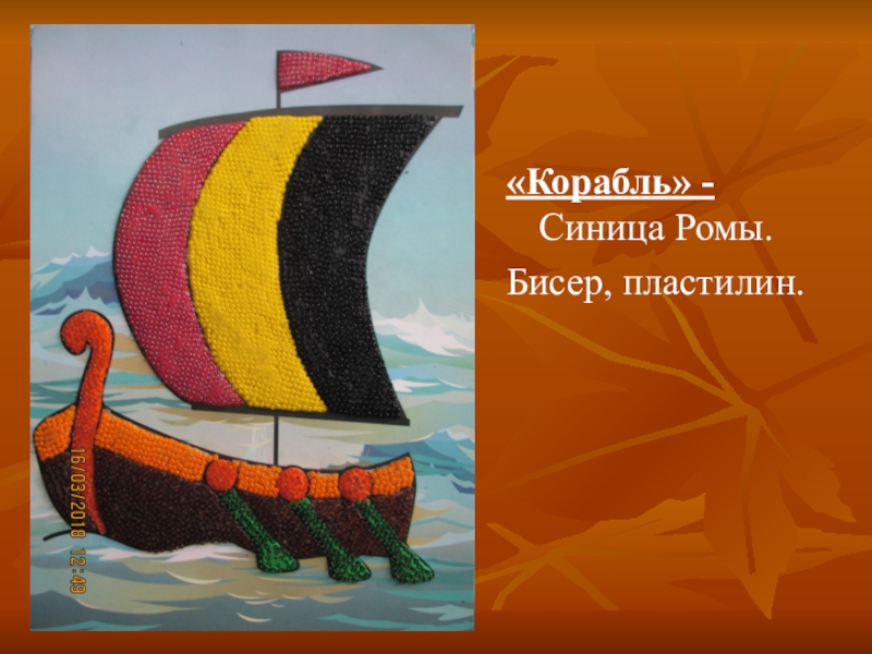 «Корабль» -  Синица Ромы.Бисер, пластилин.