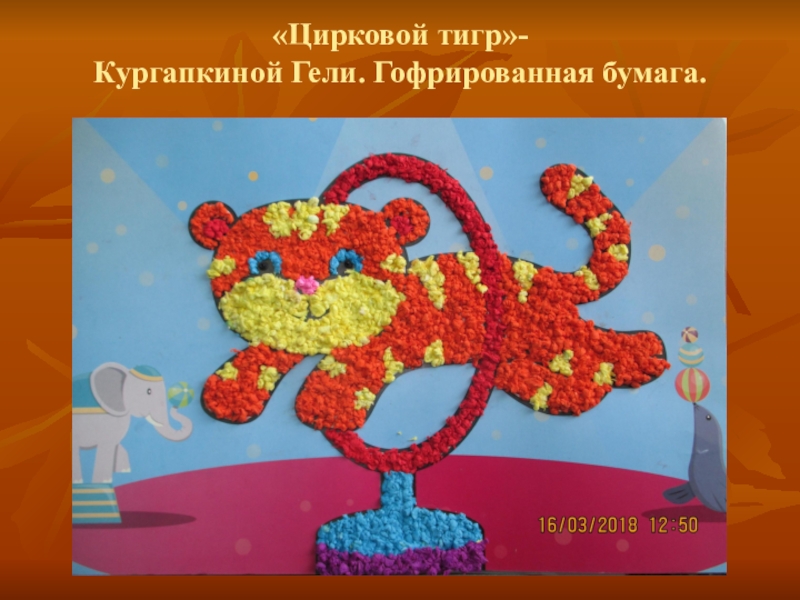 Слайд 2«Цирковой тигр»- Кургапкиной Гели. Гофрированная бумага.