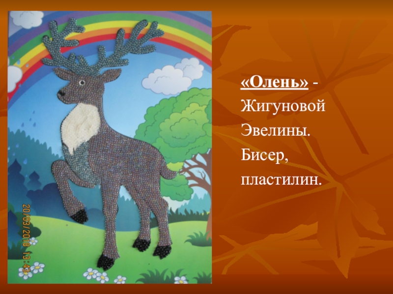 «Олень» -ЖигуновойЭвелины.Бисер,пластилин.