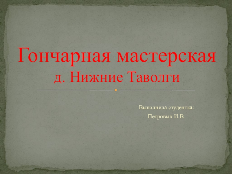 Выполнила студентка:Петровых И.В.Гончарная мастерская д. Нижние Таволги