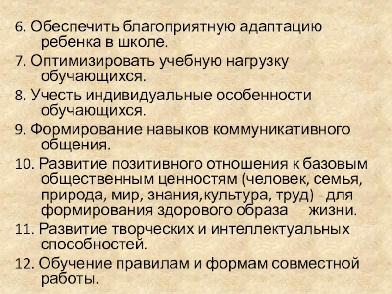 Слайд 66. Обеспечить благоприятную адаптацию ребенка в школе.