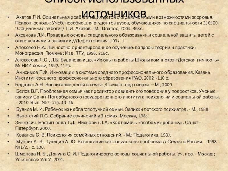Акатов Л.И. Социальная реабилитация детей с ограниченными возможностями
