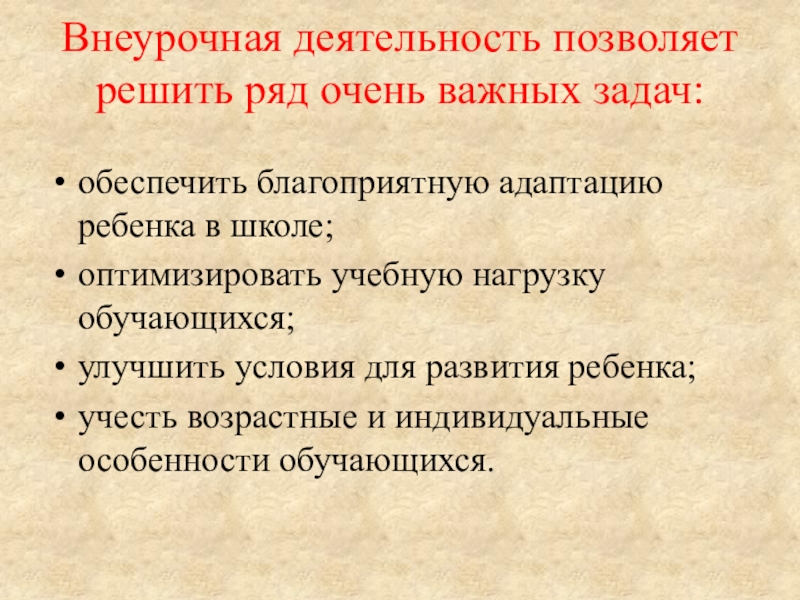 Слайд 4Внеурочная деятельность позволяет решить ряд очень важных задач: