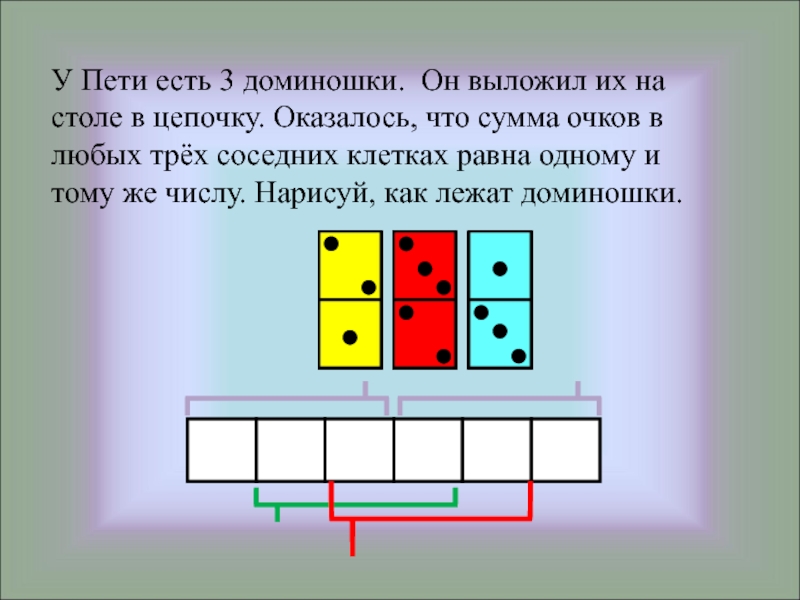 Слайд 16У Пети есть 3 доминошки. Он выложил их на столе в