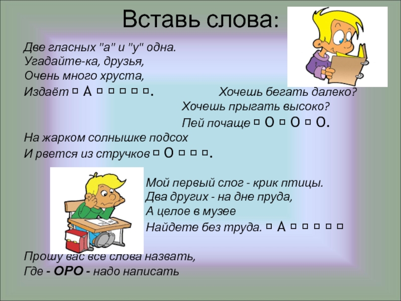 Слайд 23Вставь слова: