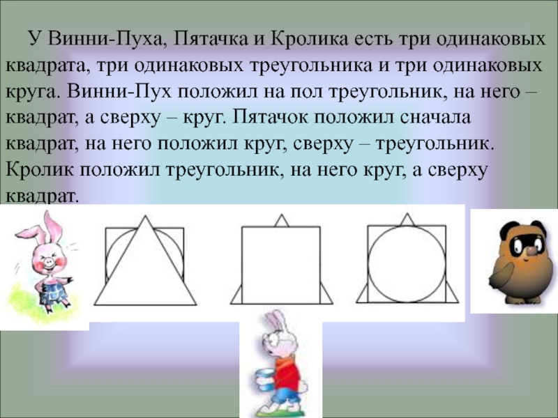 Слайд 15 У Винни-Пуха, Пятачка и Кролика есть три одинаковых квадрата,