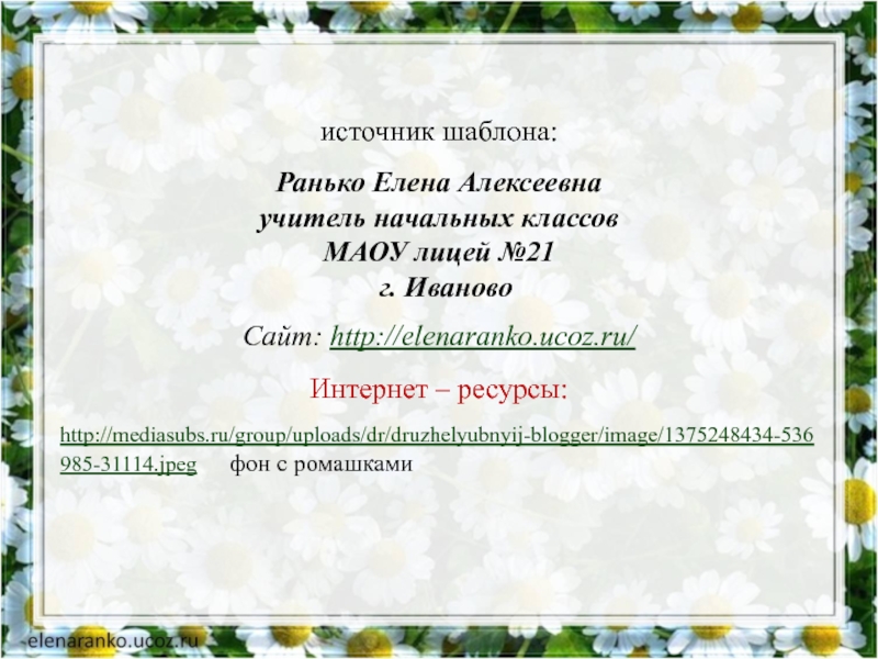 источник шаблона: Ранько Елена Алексеевна учитель начальных классов МАОУ лицей №21 г. ИвановоСайт: http://elenaranko.ucoz.ru/ Интернет – ресурсы:http://mediasubs.ru/group/uploads/dr/druzhelyubnyij-blogger/image/1375248434-536985-31114.jpeg