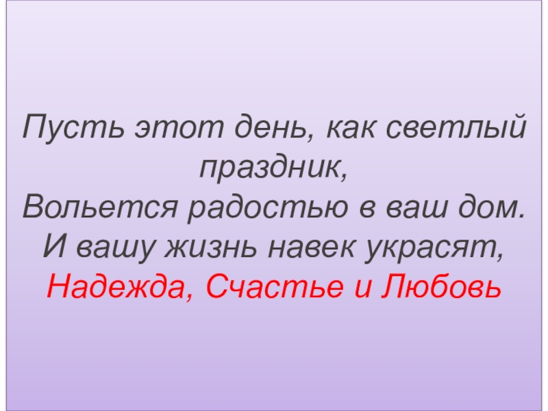 Слайд 4Пусть этот день, как светлый праздник, Вольется радостью в ваш дом. И вашу