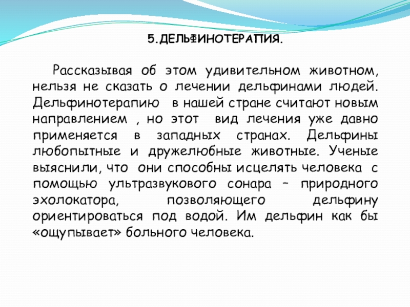 Слайд 195.ДЕЛЬФИНОТЕРАПИЯ.