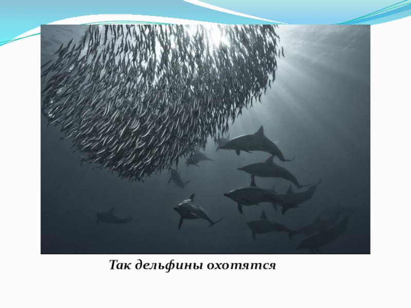 Слайд 14Дельфиновые живут стаями (от 2–3 до 100 особей). В стаях все