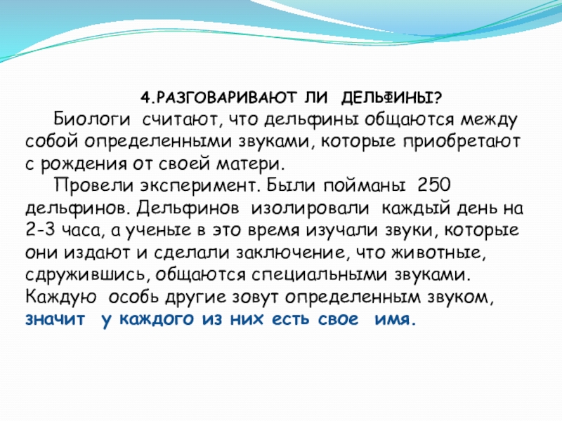 Слайд 164.РАЗГОВАРИВАЮТ ЛИ ДЕЛЬФИНЫ?
