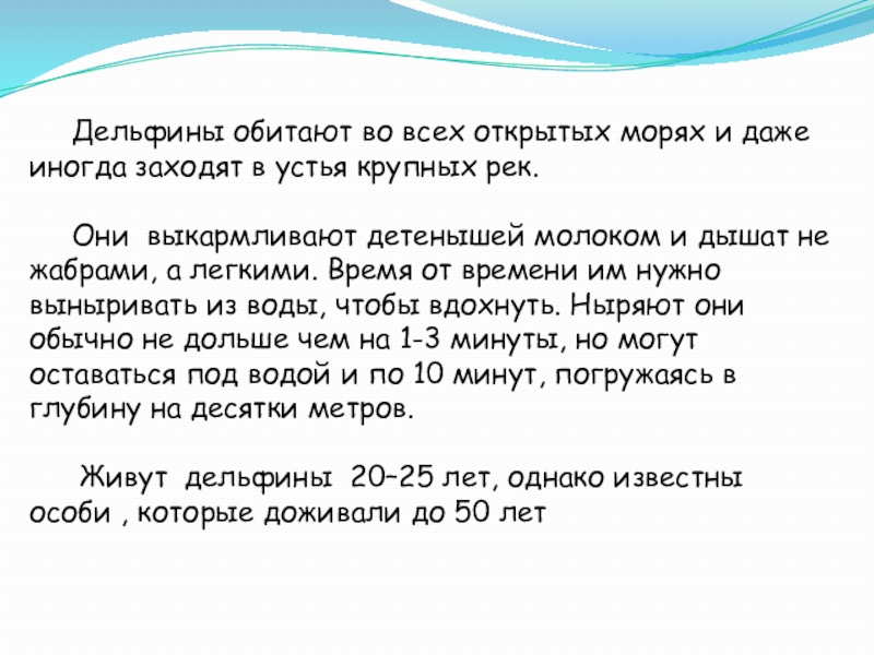 Слайд 7Дельфины обитают во всех открытых морях и даже иногда заходят в