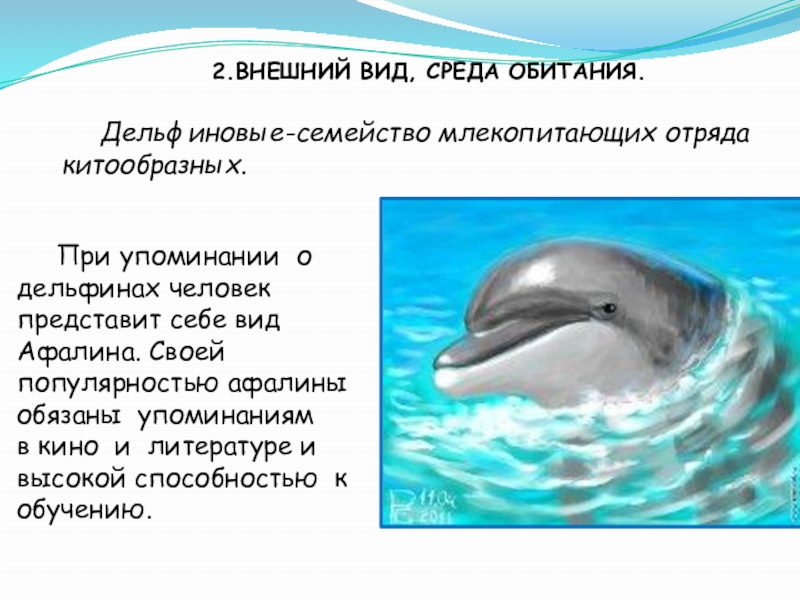 Слайд 6При упоминании о дельфинах человек представит себе вид Афалина.