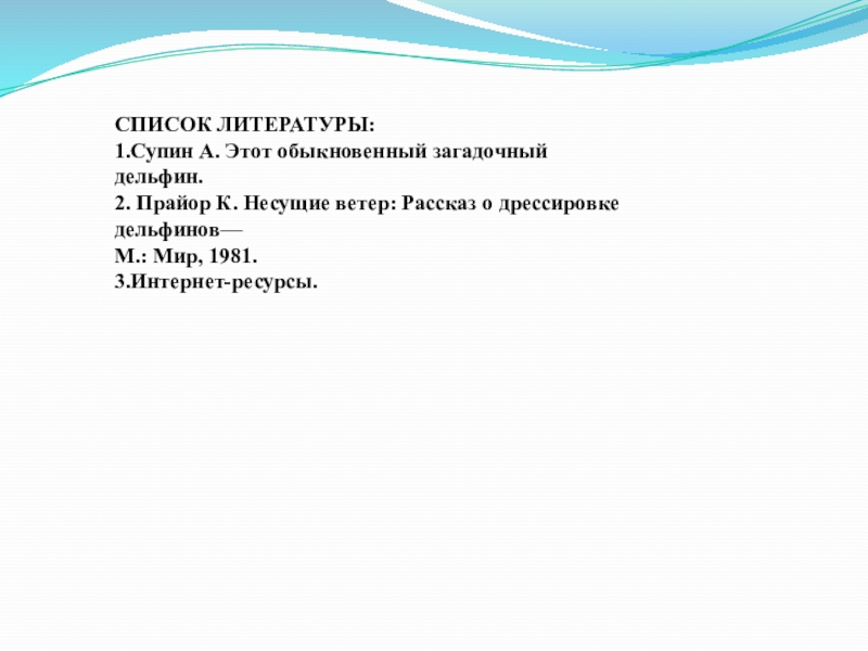 1.Супин А. Этот обыкновенный загадочный дельфин.